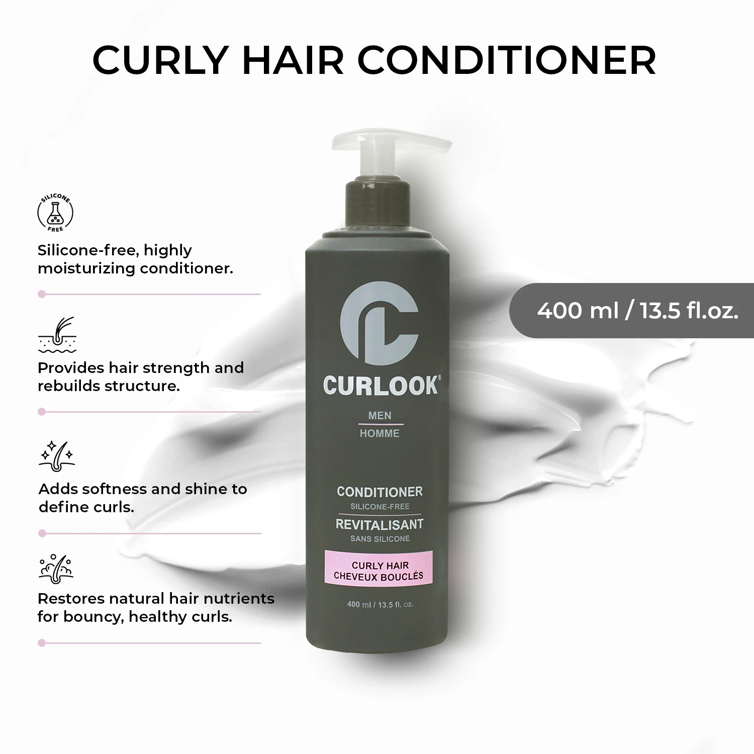 CURLOOK Curly Hair Conditioner for MEN | Silicone Free – 400ml (13.5 oz)